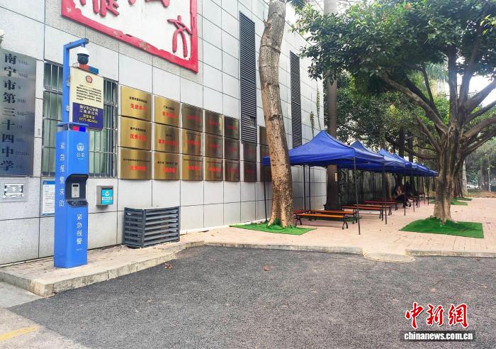 今日记者正在北宁市第3104中教真天访问瞧到,校门二侧境况面目一新,井然的掩阳挡雨棚顺次排启,苏息少椅晃搁有序,配套的隔断围栏取照亮办法应有尽有。